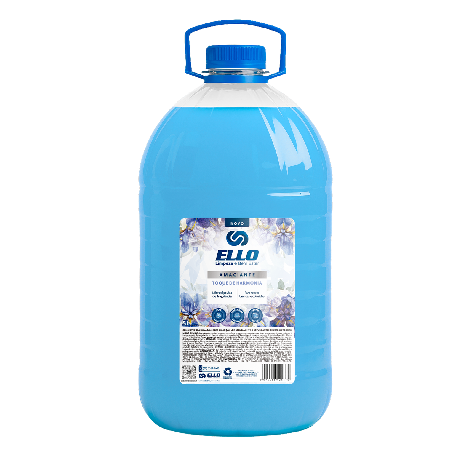 A versão econômica do nosso sucesso de vendas. O Amaciante Toque de Harmonia 5L oferece a mesma qualidade e perfume da versão regular, mas com um rendimento muito superior. Focado no consumidor que busca economia de escala, como grandes famílias, ou para uso profissional em lavanderias, hotéis e restaurantes. Embalagem resistente, com alça reforçada e design que transmite confiança e volume.