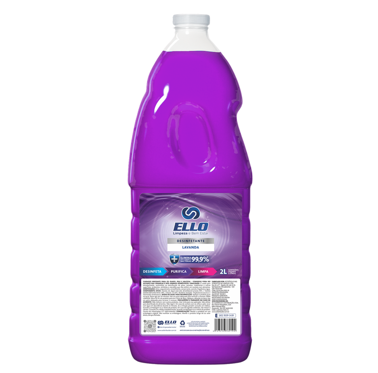 A fragrância clássica da limpeza com o poder de desinfecção da Ello. Este desinfetante não apenas limpa e perfuma com notas de Lavanda, mas também esteriliza o ambiente matando 99,9% das bactérias nocivas à saúde. Indicado para a limpeza diária de quartos, salas e áreas de serviço.